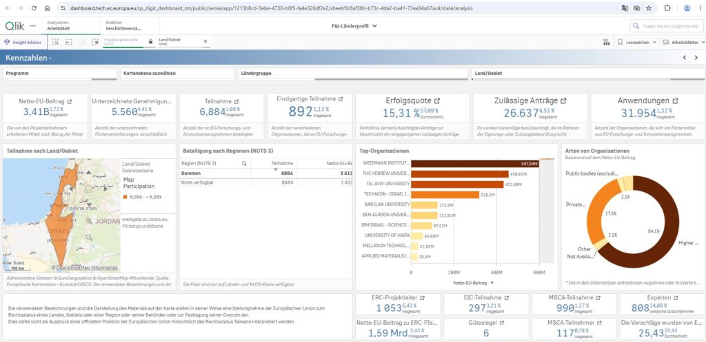 [1] CORDIS Database of the European Commission – Country Profile Israel