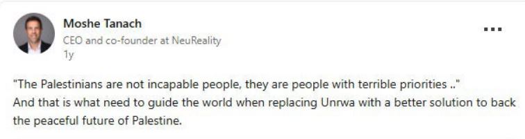 Moshe Tanach (CEO NeuReality): LinkedIn post about UNRWA, 2024